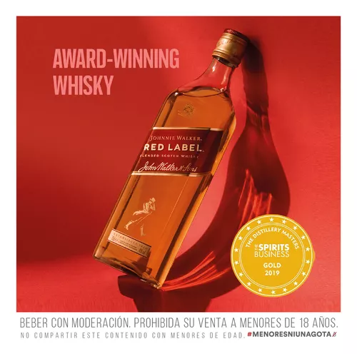 Johnnie Walker Red Label es un whisky escocés lleno de sabor especiado, excitando el paladar con dulzura afrutada, canela y pimienta. Toques de manzana fresca y el sabor de la elegante malta Speyside bailan en tu lengua. La experiencia se completa con la firma de todos los Johnnie Walker Blends; un final sofisticado y ahumado. Cuando maneje, no tome.