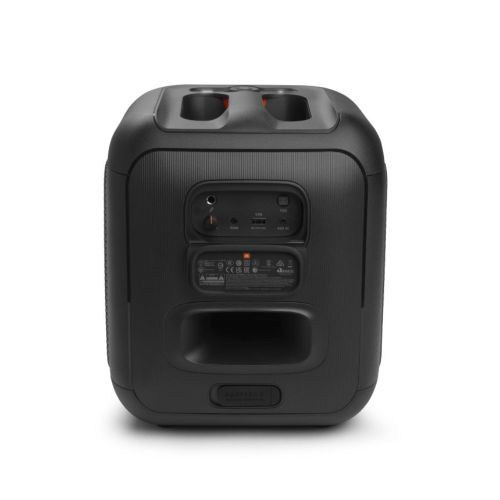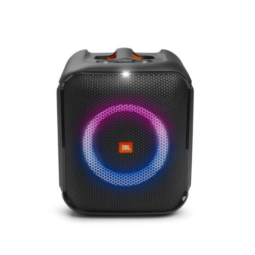 Este parlante portátil para fiestas posee un potente sonido de 100 W, espectáculo de luces dinámico incorporado que ofrece una divertida luz anular y un efecto estroboscópico que se sincroniza con el ritmo de tu música y, además, un diseño resistente a salpicaduras. Podrás convertir cualquier fiesta en karaoke con su entrada de micrófono con cable. Ofrece hasta 6 horas de uso de batería.